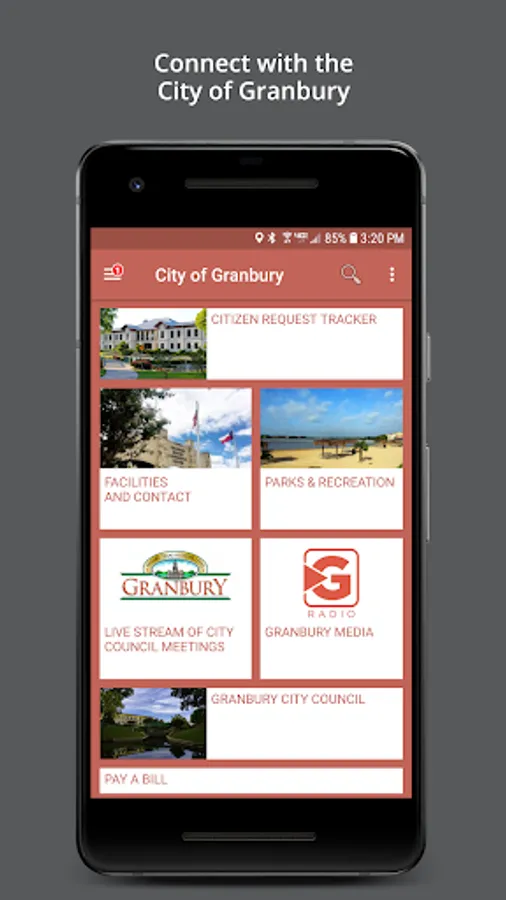 - Connect with the City of Granbury to report issues, find city staff, pay a bill, access a live stream of city council meetings and more