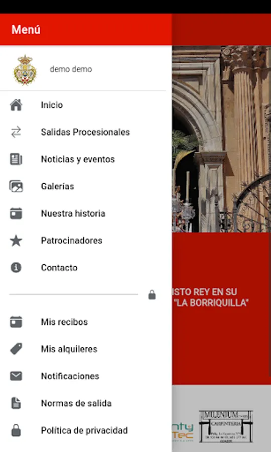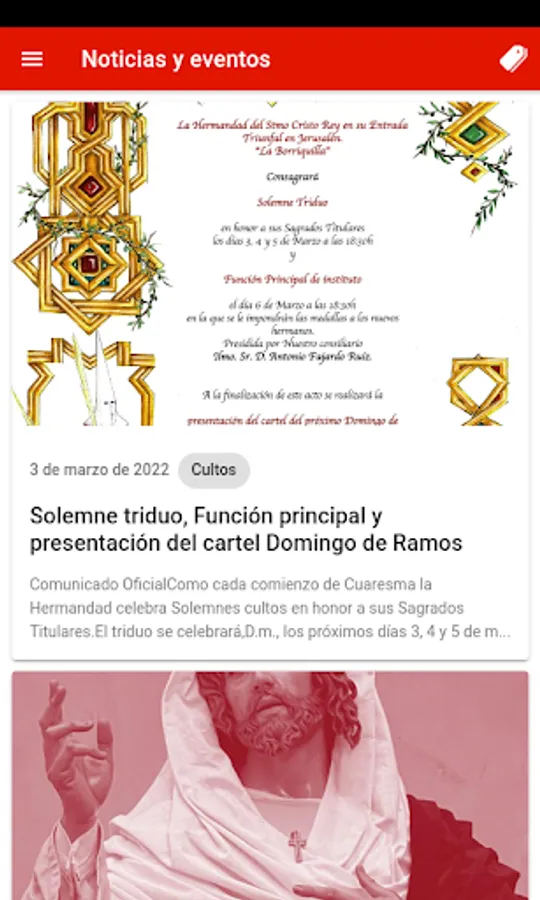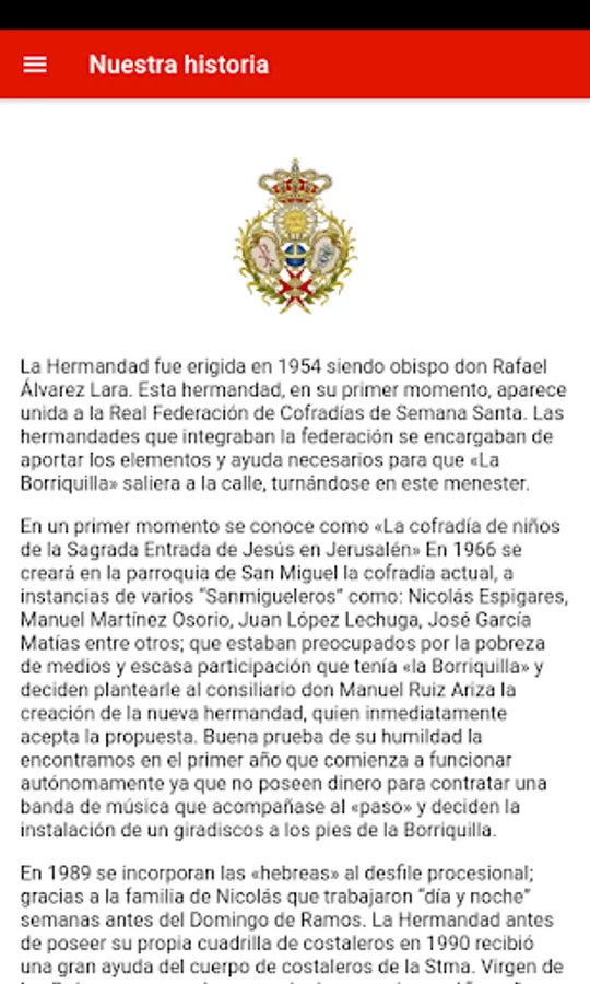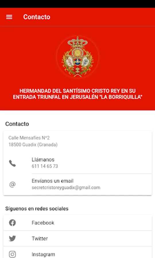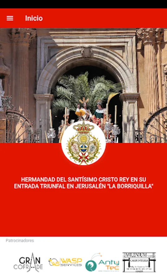Official application of the Brotherhood of the Blessed Christ King - La Borriquilla de Guadix, upcoming departures and identified access for siblings in which they can consult / modify their personal data, consult receipts and receive notifications from the Brotherhood.