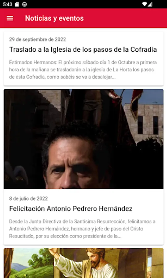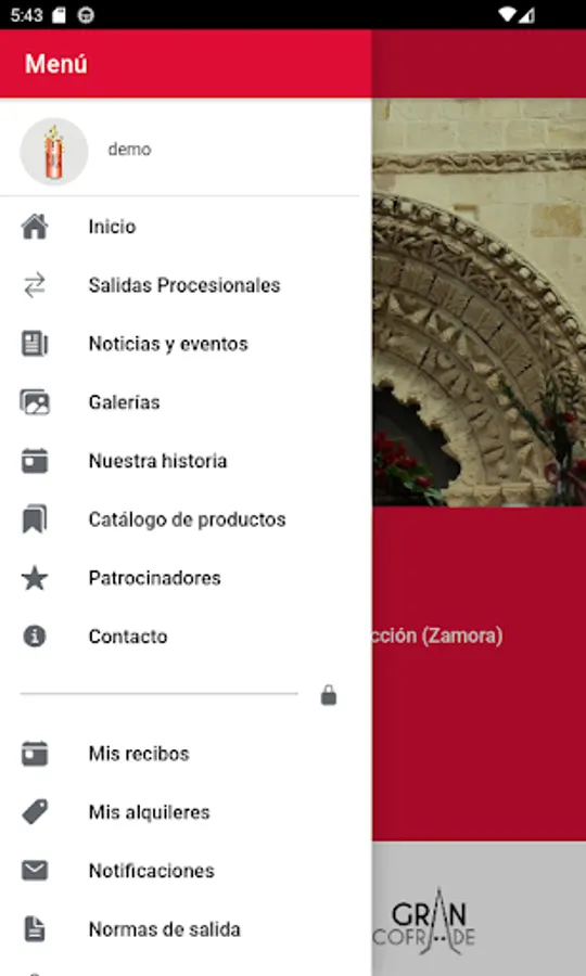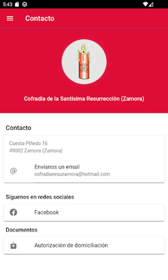 Official Application of the Brotherhood of the Most Holy Resurrection of Zamora, next exits and identified access for the brothers/sisters in which they can consult/modify their personal data, consult receipts and receive notifications from the Brotherhood.