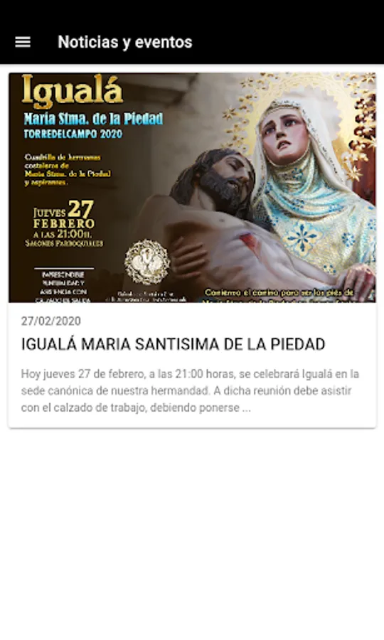Official application of the Hermandad del Santísimo Cristo de la Santa Vera Cruz, Jesús Sentenciado and Mª Santísima de la Piedad de Torredelcampo, next departures and access identified for the brothers / sisters in which they can consult / modify their personal data, check receipts and receive notifications of the Brotherhood.