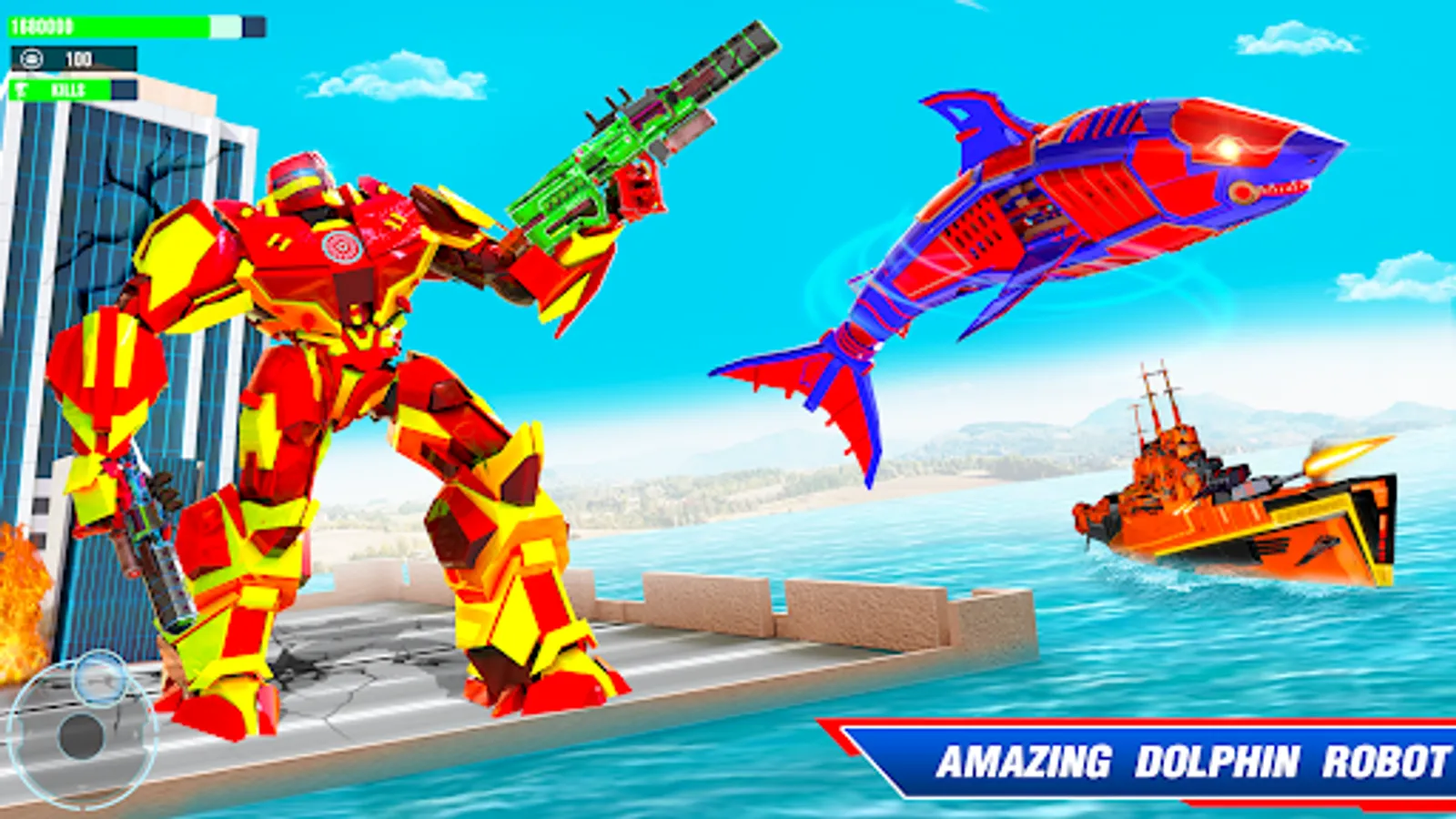 Join futuristic battle of transforming cars having destructive weapons to cause massive destruction in grand dolphin robot game. Robot car game provides you amazing opportunity to perform modern city rescue duty with transformation of grand dolphin. Utilize incredible car transforming ability and transform car into grand dolphin robot to fight against alien forces. Futuristic transform war will give you the most thrilling experience of space robot fight and dolphin attack. Prove yourself as an ultimate mech warrior in transforming car game and use different strategies and tactics to emerge victorious form of final battle.
