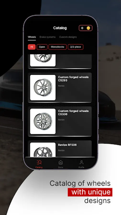 Grandrims App isn't just a mobile store where you can choose and order forged wheels and brake systems. Our app has a unique augmented reality option. Now you can try on up to 500 drive designs on your car. As well as change the color and size of the wheel? add unique accessories and style tires.