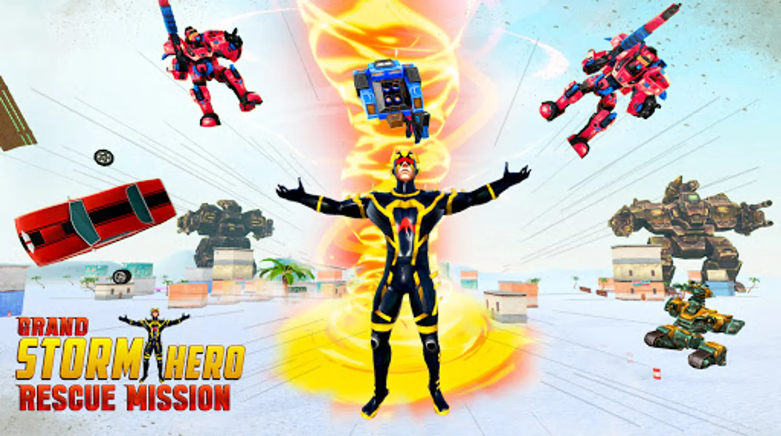 flying snow robot shooting games are now becoming favorites to all new players who want to enjoy fun, action, fighting, driving and entertainment at single place of street stunt flying fighting games. Be a part of snow super hero city action game. Snowstorm Robot game is a city simulator in third person view (and FPS mode), where you drive an amazing cars or a motorbike. You play is a hero / cyborg and whole city fears you. You are a hero that controls snow and ice. You can freeze anyone or anything. We have improved the quality of graphics and also have significantly expanded the game store, as well as discounts on products. The game has updated the range of ammunition for the players. An ultimate upgrade of flying superhero game went terribly right! Now you are an official snow storm hero robot. Don't mess with the police, they are the good ones.