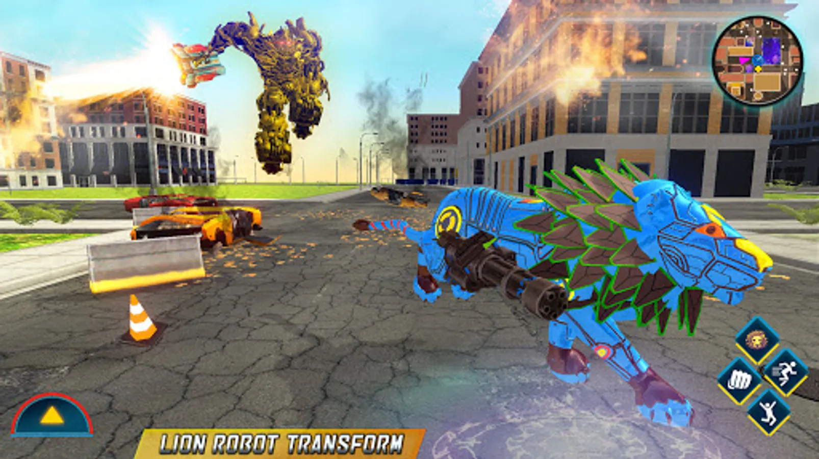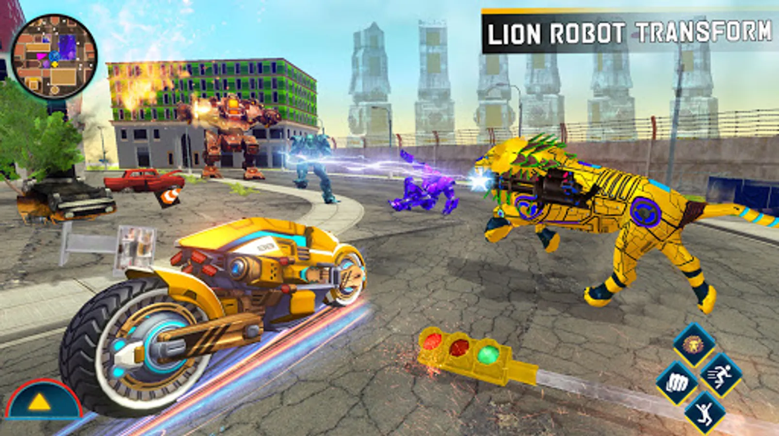 It's time to be a real battlefield king and to smash the rivals of lion war-zone battle game. LetÃs play the robot games. Ready for aim and fire in lion hunting dino shooting game or lion robot crocodile shooter adventure game. Stop crimes of evil robot who are doing crimes in city in this battle games. Multiplayer robot offline bike transforming real lion transform adventure game is intensely robot difficult and it is amazing too because in it you will have to server you nation by rescuing your people from evil robots. You have to fight against many evil robot cars in this combat battleground lion fighting war simulation game. Kill all the evil robots and teach them a lesson which they will remember for years. Enjoy amazing real lion robot fighting games concept game.