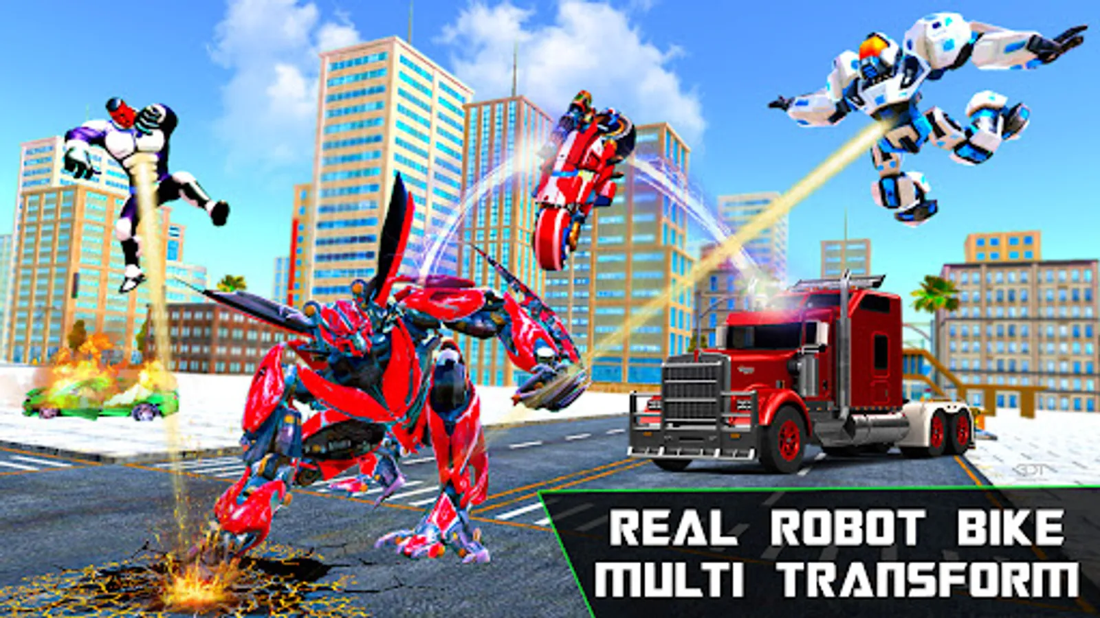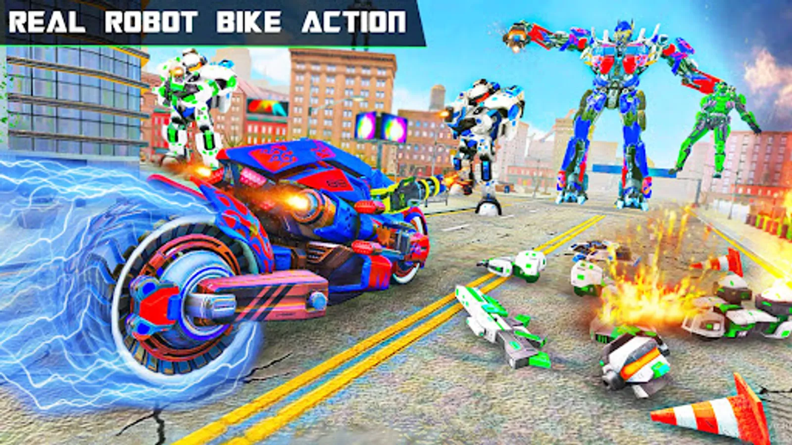 It is not easy to save the city in this real robot transformation games from destruction cause be the evil power flying jet robot car transformation 2020 & bike transforming robots mafia gangsters. Grand Robot bike battle soldiers are in a line up and waiting for your order so that they can attack the evil robots in this super hero robot bike rangers game. flying bike robots and air jet Helicopter transform hero mafia and gangsters are attacking your city, gangster robots has destroyed many places including army bases and now gangster evil bike transform robots and mafia gangs are attacking the city police and other important buildings and they are also attacking civilians and they are taking over all the resources its time for you fight against the evil robots and to teach them a lesson that you are the best superhero bike robot war-zone battle transformation robot city battle. The futuristic robot bike transform games has just began the struggle to take the power is going on between good and evil robots turn into power robot us bike transforming battle. Use your super power to catch the evil robots.
