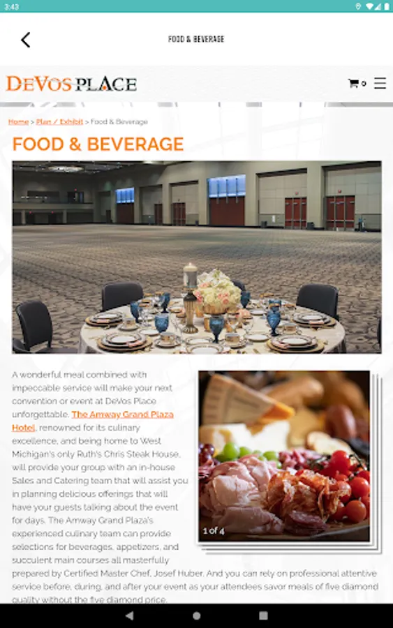 DeVos Place is the premier convention center located in the heart of Downtown Grand Rapids. With 162,000 square feet of exhibition space and flexible meeting space, DeVos Place offers the perfect setting for your next convention or meeting. The DeVos Place Mobile App is perfect for event producers and visitors alike. The app is a personal concierge for your smart phone that combines networking and navigation to get you to the right people, places, and services. Within one simple application you can: