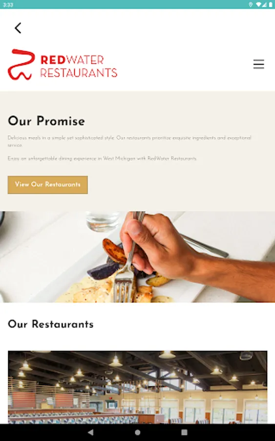RedWater Restaurant Group has 6 restaurant locations including; Reds on the River, Rush Creek Bistro, FireRock Grille, Vintage Prime & Seafood, Cork Wine & Grille, Gravity Taphouse Grille. Our mobile app will have tons of great features that all of our customers can use such as;