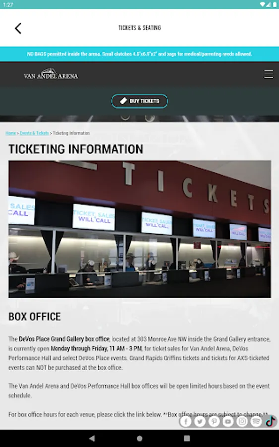 Van Andel Arena, the 12,000+ seat entertainment venue in downtown Grand Rapids, MI hosts the biggest names in concerts, comedy, family shows and sporting events. With the Van Andel Arena Free Mobile APP, you can see upcoming events, purchase tickets, find parking information, share photos,