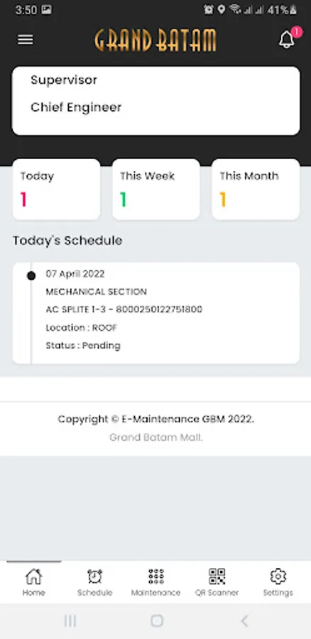 This application was created to improve Grand Batam Mall services in terms of Preventive and Maintenance.