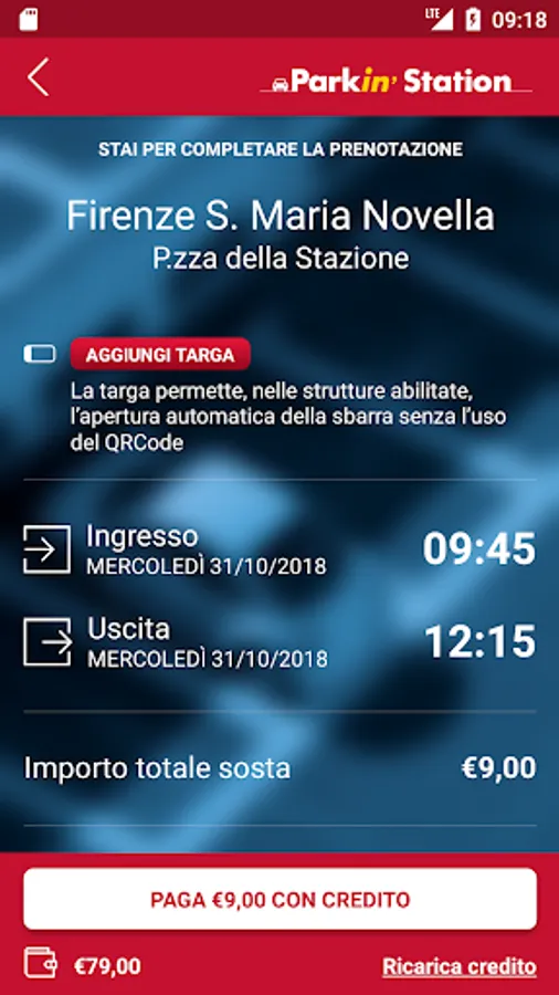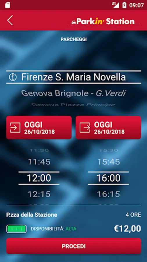 With Park'inStation, you can book, guaranteeing the availability of the place, near the railway stations of Rome, Florence, Genoa, Milan, Naples, Turin, Venice, Verona. Once you enter you can prolong the stay in case of delayed exit with respect to the reservation. In some parking lots through APP you get a discount compared to the price list.
