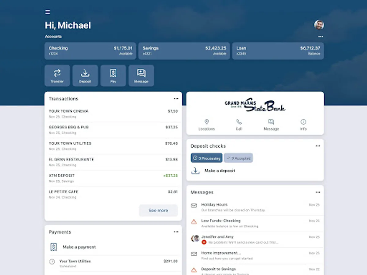 To use the GMSB&GO app, you must be enrolled as a Grand Marais State Bank digital banking user. If you currently use our Internet Banking, simply download the app, launch it, and login with the same Internet Banking credentials.