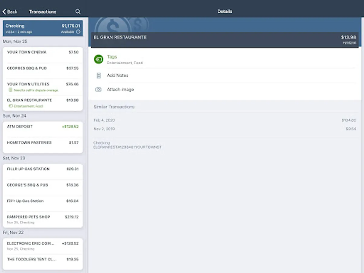 Keep your transactions organized by allowing you to add tags, notes and photos of receipts and checks.
