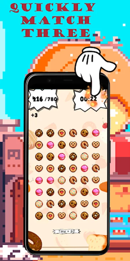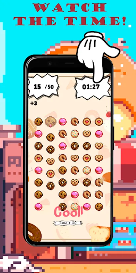 In this classic match 3 game you are tasked to match cookies - match 3 or more items (rows or columns) to destroy them. And you earn points for each combination. Within the given time period of 2 minutes you are required to reach a given score before the time runs out. Whenever you reach the goal, increment it and reset the timer.