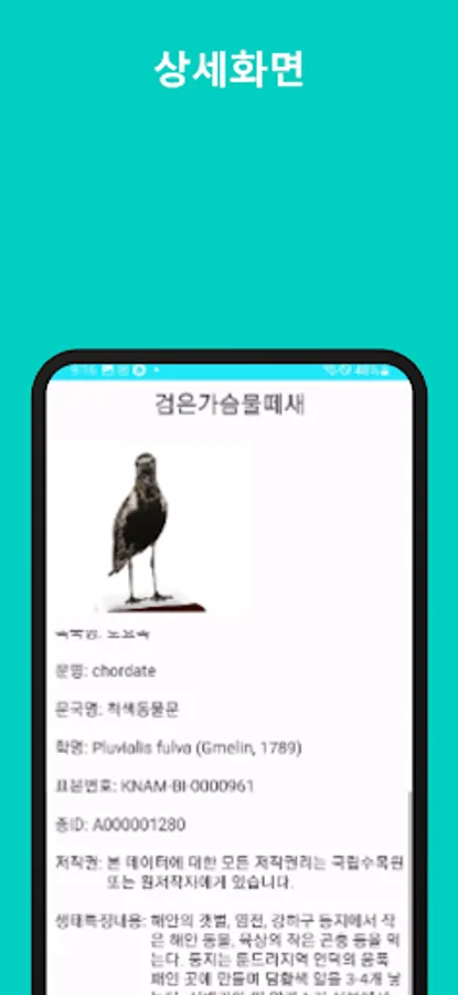 This app is an app that utilizes the Korea Forest Service National Arboretum _ Bird Resource Service data. In addition, this app informs you that it is not related to the institution at all.