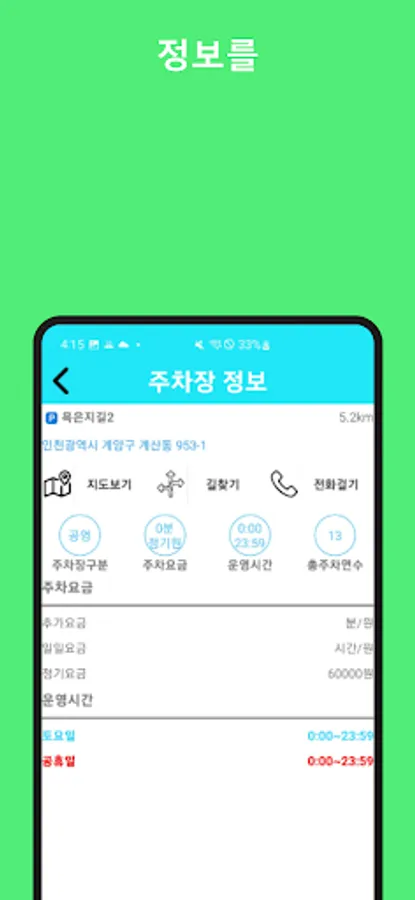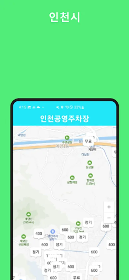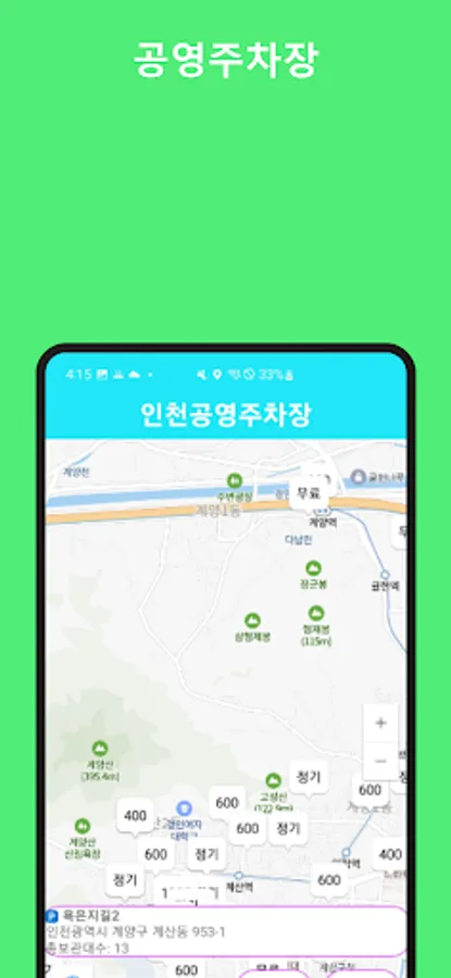 Incheon City public parking lot information. A total of 760 on-street off-street parking lots are included.