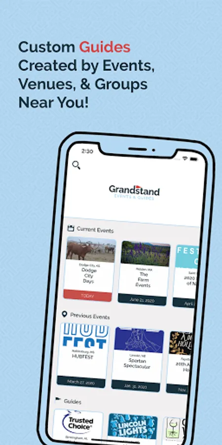 Find an event or year-round group near you and view schedules, maps, vendors, food, and more. Each event listed on Grandstand - Events & Guides has been setup directly by the event or group and contains all of the official information for that event.