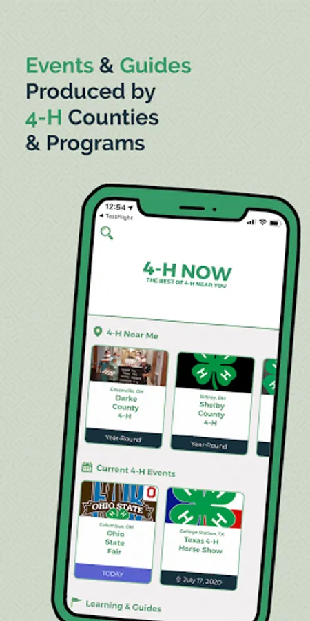 Find a 4-H program, event, or fair near you with 4-H Now by Grandstand. State 4-H and County 4-H organizations from around the country have created their own app on 4-H Now complete with schedules, maps, results, photos, fun photo filters, scavenger hunts and more!