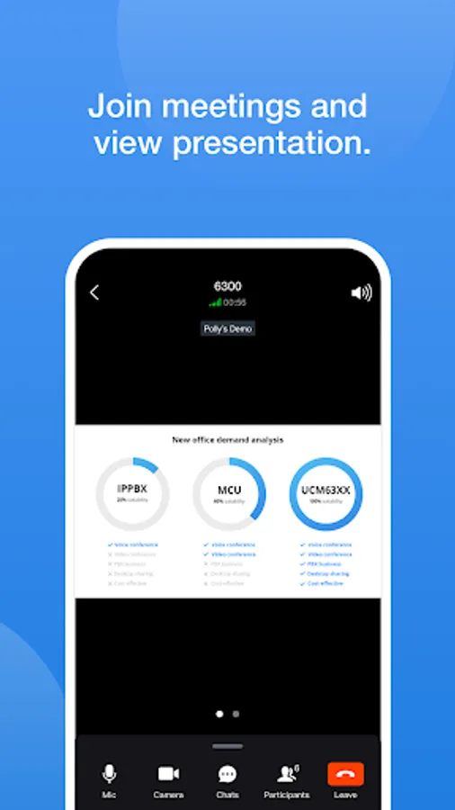 Wave turns your device into a softphone that can connect, call, and video conference from anywhere by connecting to a Grandstream UCM63XX series IP PBX. It supports key features such as high-quality audio/video calls and meetings, chats and download attach files, take and share photo/files from your phone, scheduling and attending meeting, and allows joining meetings without logging in. As long as there is a network connection, users can register to UCM63XX series extensions, directly call other extensions, landlines, and mobile numbers, as well as create and join meetings. With Wave, users can enjoy calls and meetings no matter where they are, boosting communication efficiency and productivity for your enterprise.