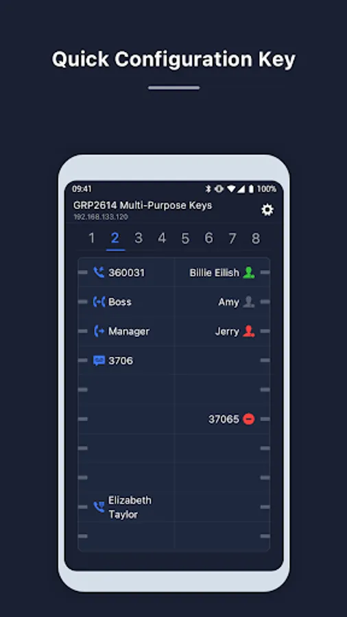 GS EXT is a mobile client used in conjunction with the Grandstream GRP260X series phones, providing simple and fast programmable buttons to record various communication needs in office scenarios, making it convenient for users to operate communication functions with one click