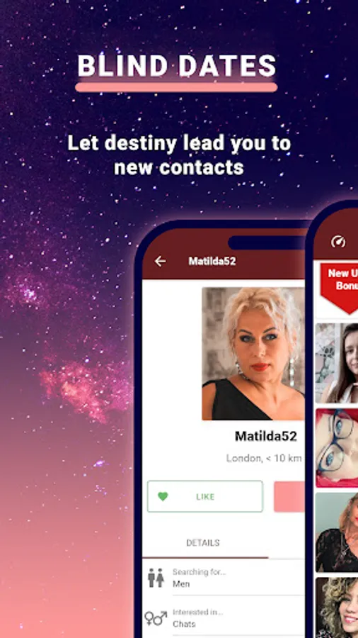 With the blind date function in the chat list you can join a randomly selected chat. This way you can get in touch with great women that you would otherwise never have met! At MatureSpace you will find countless women who keep both feet firmly on the ground, who knows what they want and what they have to do to get it. MatureSpace is the right community for you if you want to flirt with mature women!