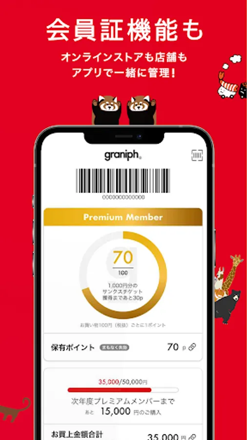 You can save points by simply presenting the screen at the store, and you can exchange it for a "Granif Thanks Ticket" that can be used as a discount ticket. To use other coupons, just select from the list and present the screen.