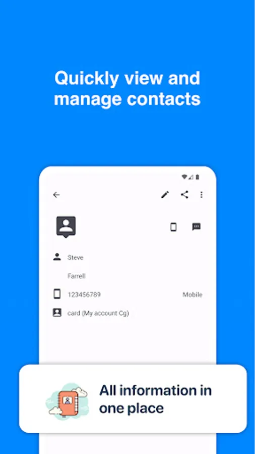 - Setup only takes 4 steps. Contacts are synced to your default contacts application on your phone / tablet. Although a 2 factor authentication password is required to log in, this can be easily generated from the app itself.