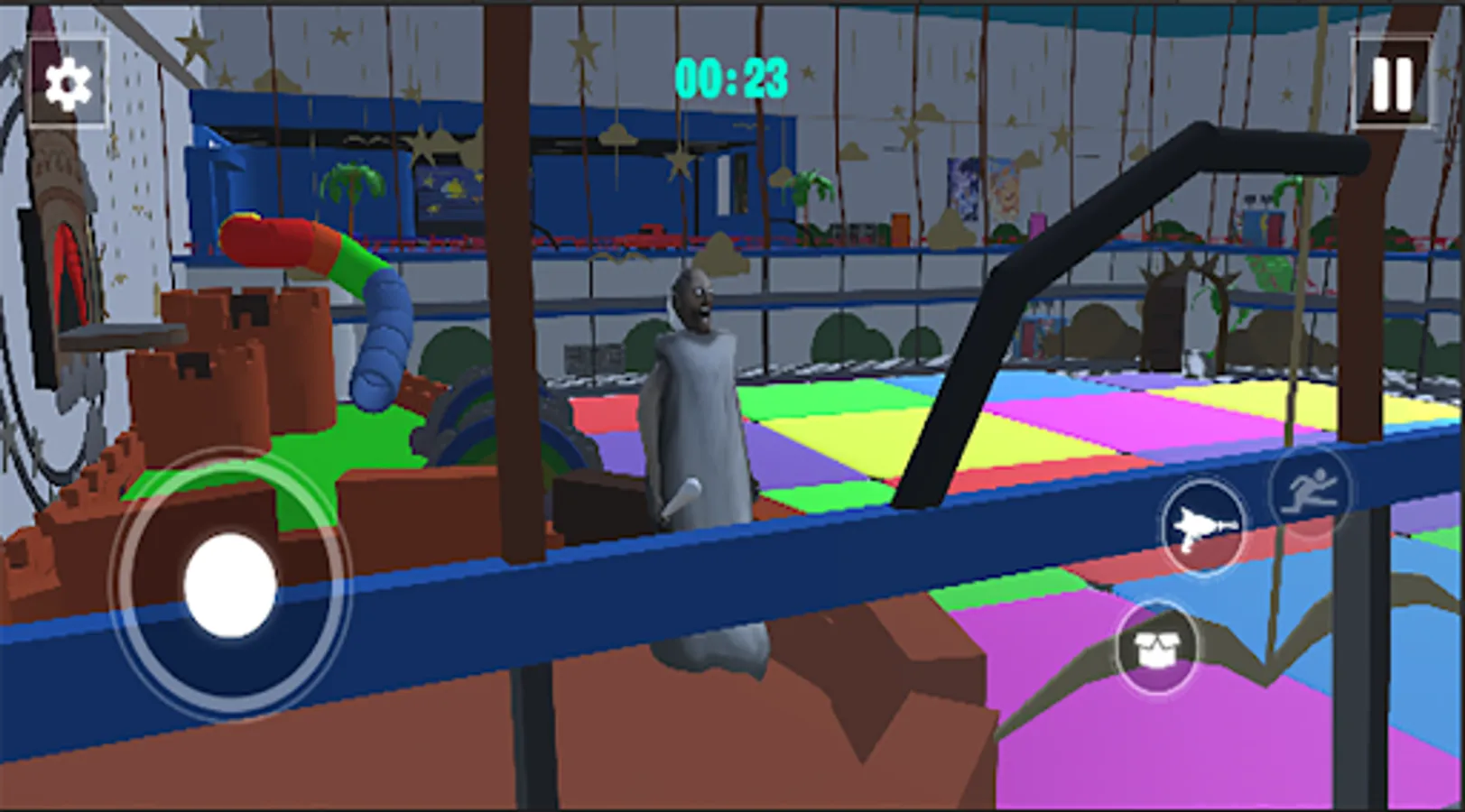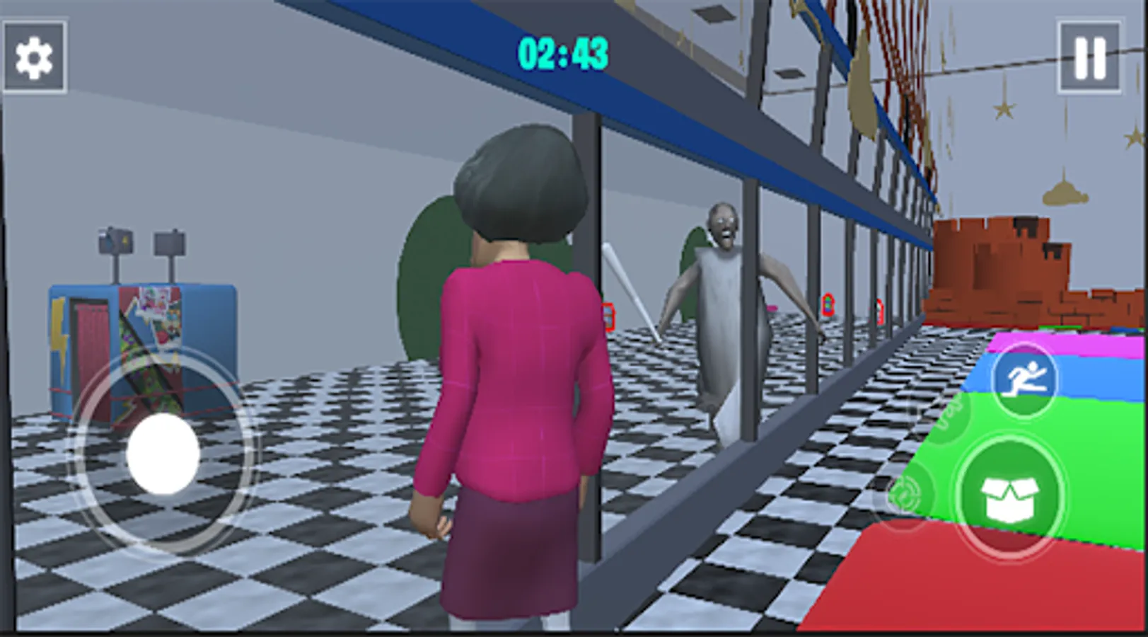 Use Granny's Teacher arsenal of weapons and gadgets to defend yourself and overcome obstacles.