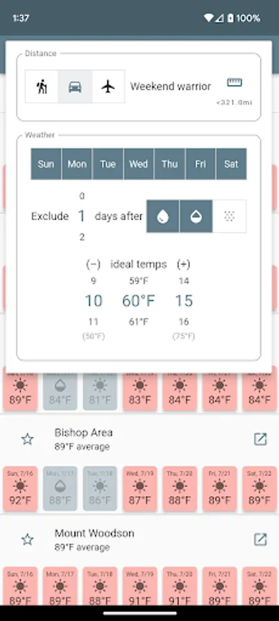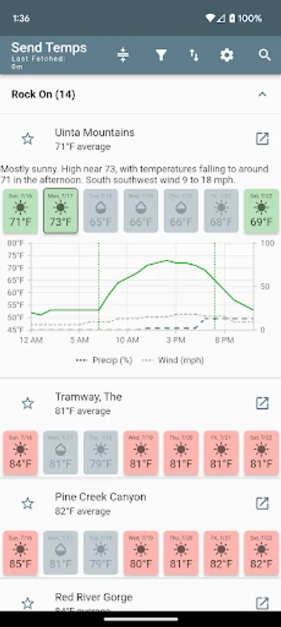 See the upcoming week's weather forecast for your favorite climbing areas, ranked by how close the forecast is to your ideal "send" temperature.