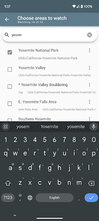 Choose your favorite boulders and crags from OpenBeta's database of climbing areas (https://openbeta.io).