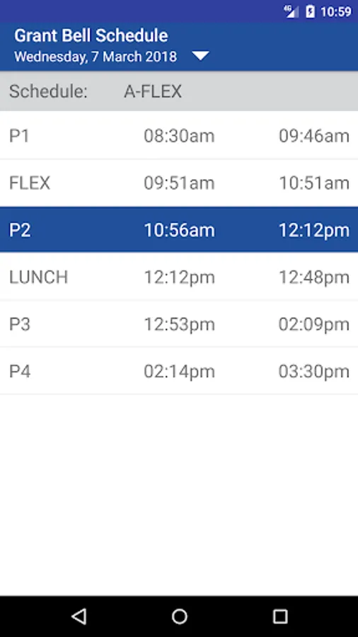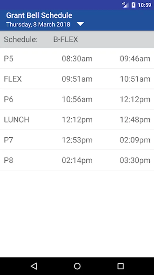 Hey Generals! You can now view the most up-to-date bell schedule any time you want. This app allows you to view today's bell schedule and schedule type (A, B, A Flex, B Flex, etc), and view future dates as well.