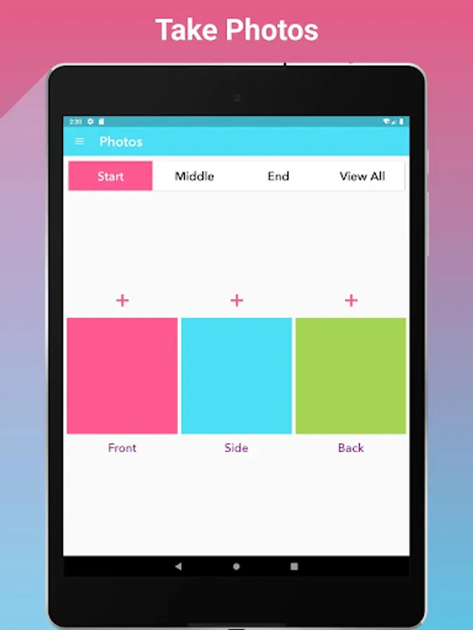 Record you daily weight on the input screen and view it on the overview screen next to your food and water rings. Color coded to show an increase, decrease, or neutral change in weight.