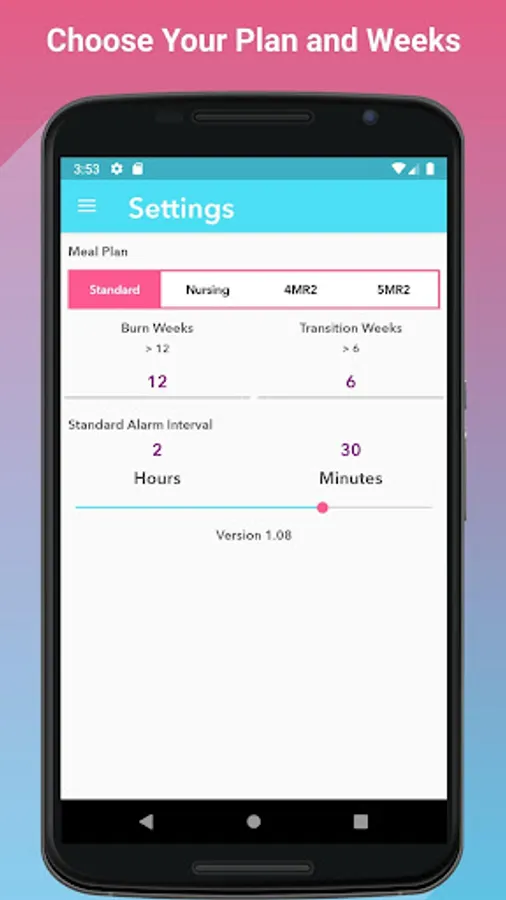 Choose the amount of weeks you want to do the program. Standard plan can change Burn and Transition weeks. The other plans can only change the Burn weeks.