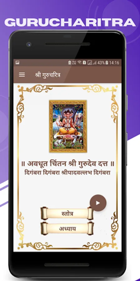 Shri Gurucharitra is a holy granth of Datta Sampraday. The biography of Shri Dattatrey, Shripada Shri Vallabha Swami and Shri Narasimha Saraswati Swami Maharaj. Which is written by Shri Saraswati Gangadhar Sakhare in 15th century.