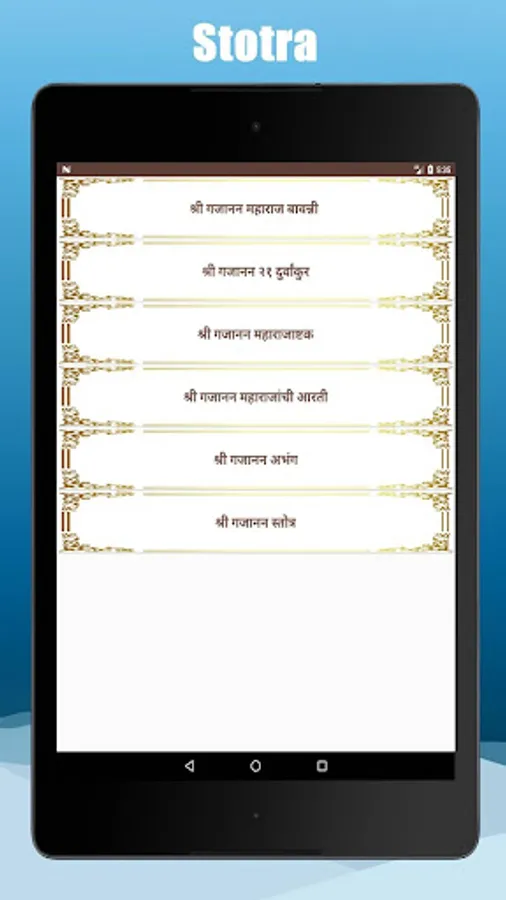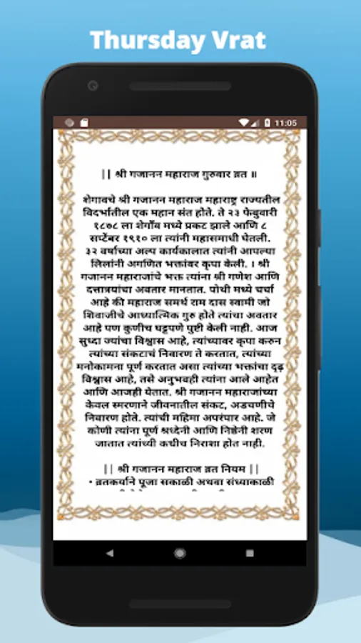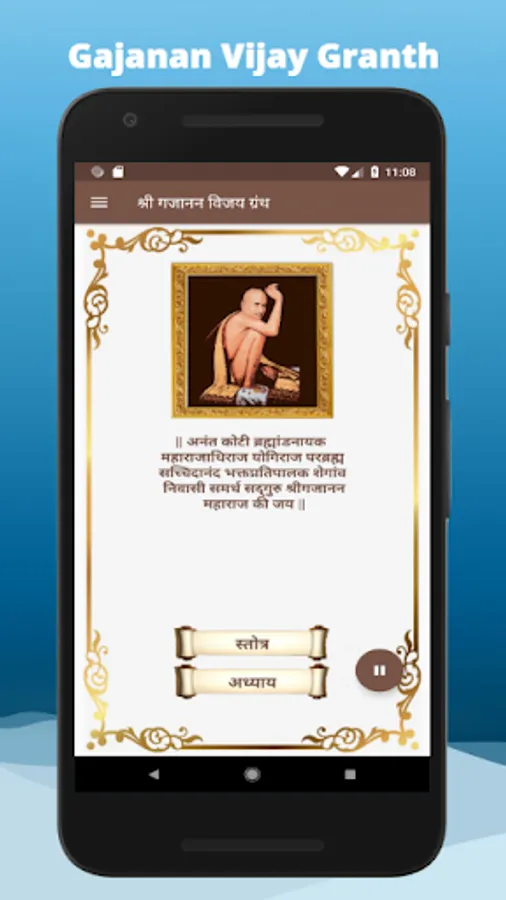 This app contains "Shri Gajanan Vijay" in Marathi, Hindi, Telugu and English language. As well as some canticles (sholks/Prarthana stotras/ Gajanan Maharaj Bhajan) like