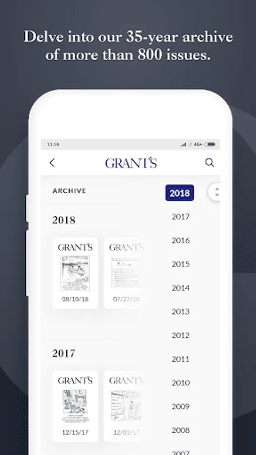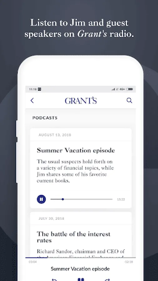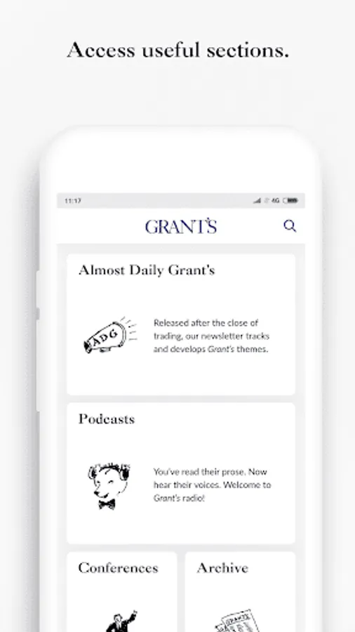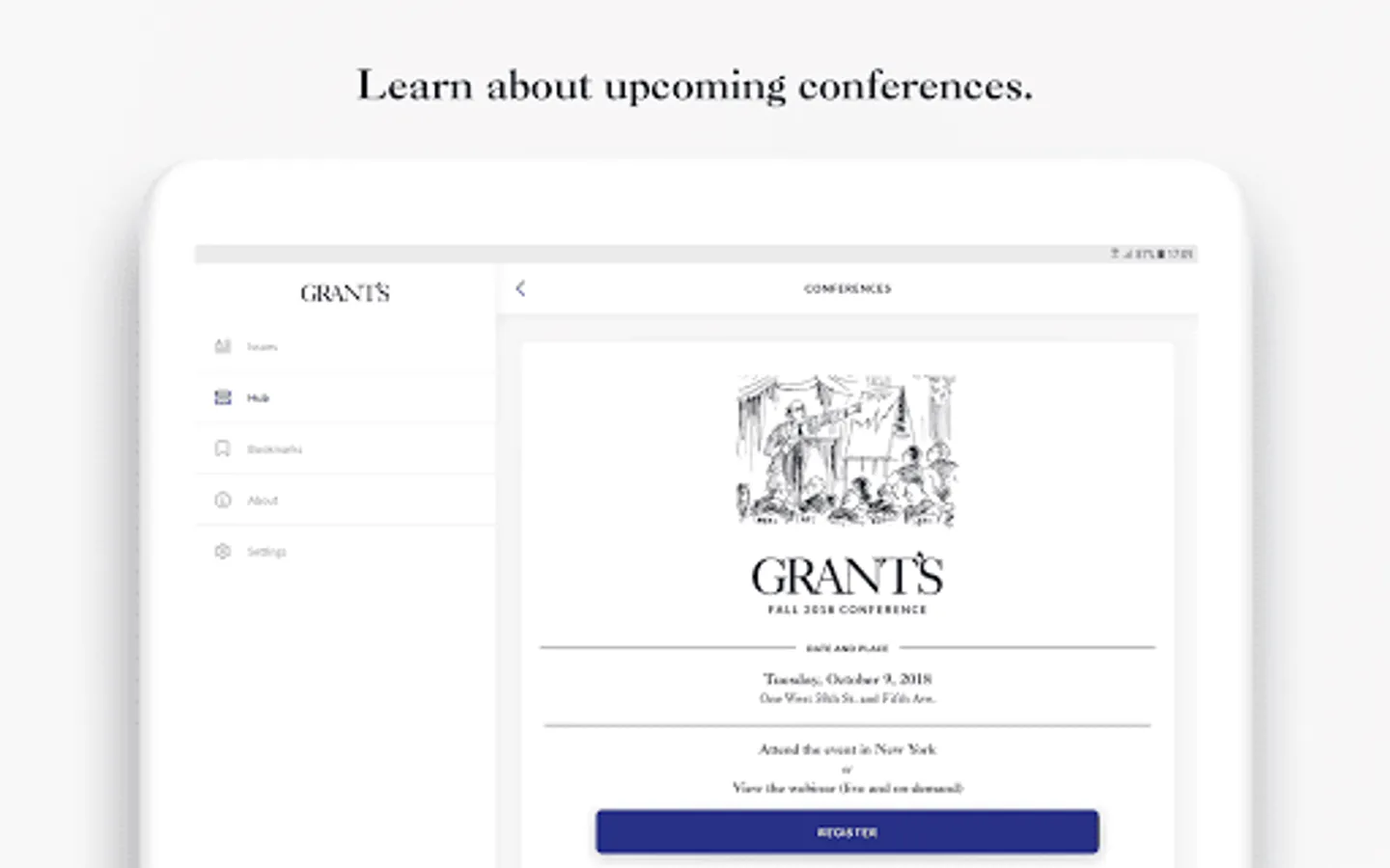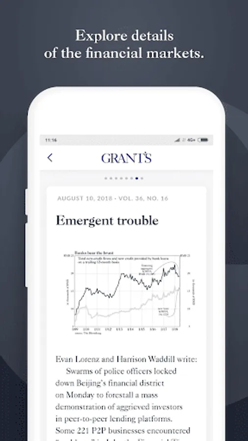 The Grant's app delivers each issue to you in a clean and easy-to-read format inspired by our print edition. Within the app, you can download and read any issue, anytime or anywhere you have an internet connection. And when you are offline, you can read any issue you have already downloaded. It's easy to take notes as well as bookmark articles or share them with friends. Beyond enjoying the stories in our flagship print edition, you can listen to our podcasts, stay up-to-date with our newsletter, "Almost Daily Grant's," search our 30-plus-year archive, and sign up for our conferences.