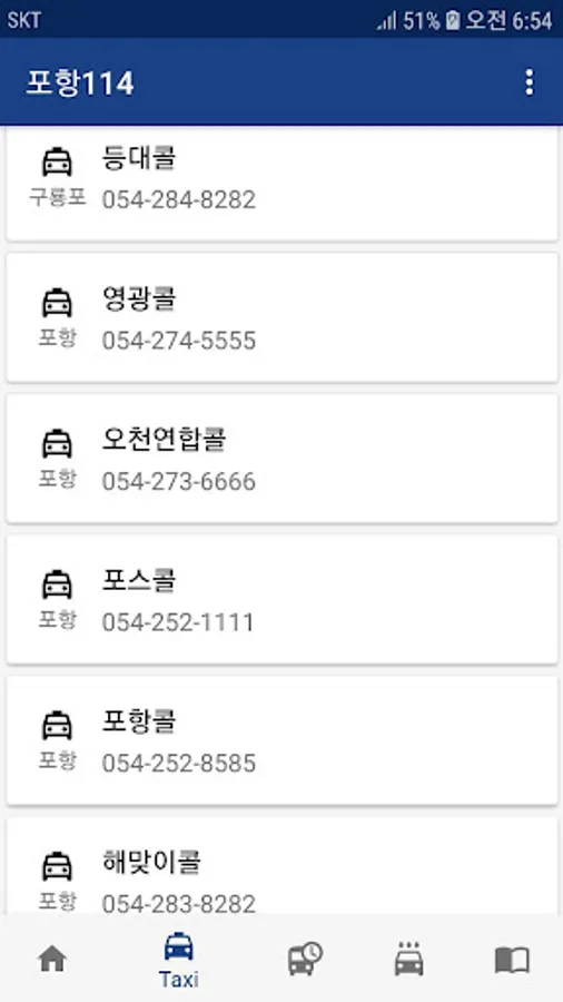 Information on Pohang, Gyeongju, Angang, Guryongpo, and Call Taxi