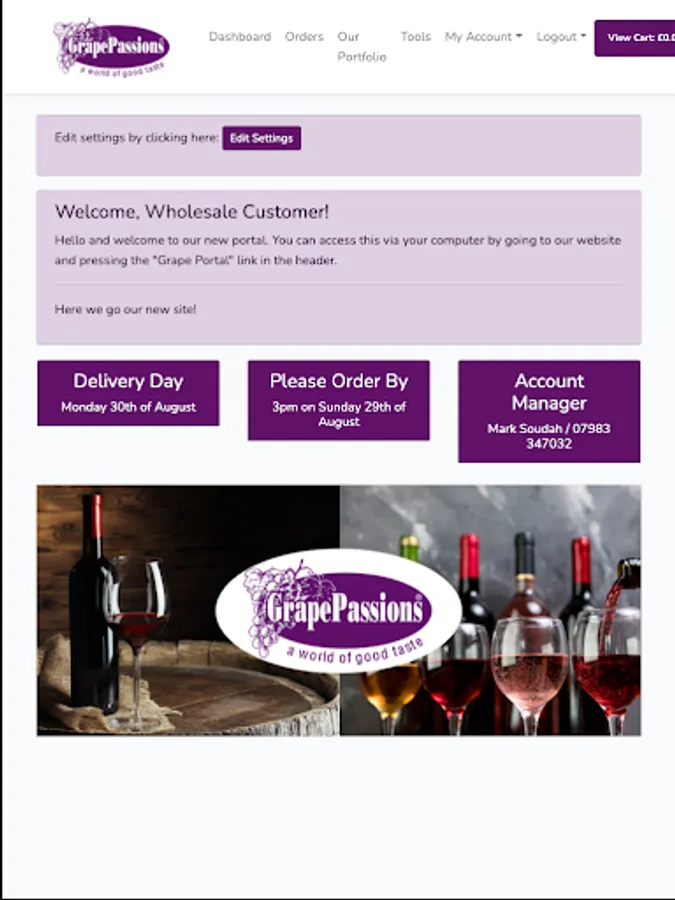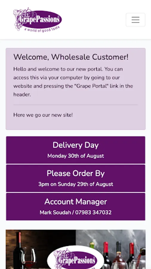 The Grape Passions app allows you to manage your account, browse wines, place an order and view your account history on the go. To access this application you will need to have a Grape Passions account. If you do not have an account please get in contact with the office to begin this process.