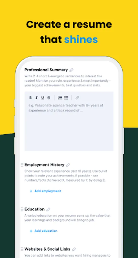 Looking for a job can be a challenging and time-consuming process, but with our Resume Builder app, you can make it easier than ever before. Download our Resume Builder app today and take the first step toward a brighter future!