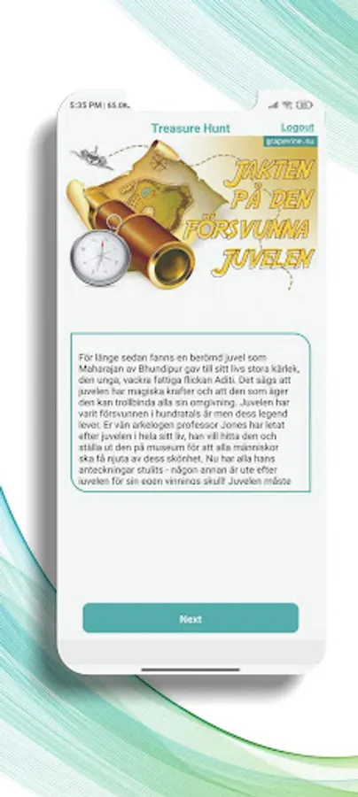 GrapevineGo app enables users to participate in customized treasure hunts. The treasure hunts have different themes and the event organizer decides where the treasure hunt will take place.