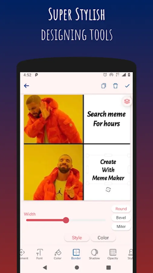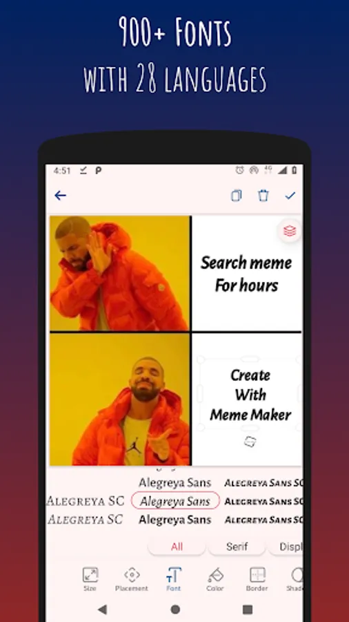 ✔️ Fine-tune your Memes by editing text alignment, font, color, or effects