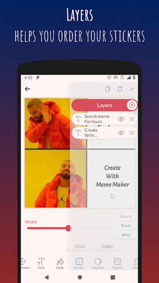 ✔️ Make your custom meme by adding text art, changing text, and fonts with multiple layers
