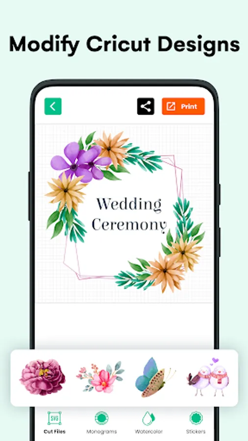 Our design space maker application contains a copious amount of resources for the assistance of its users in the creation of artwork. Its jam-packed library consists of various design ideas, monograms, cut files, shapes, stickers, and fonts.