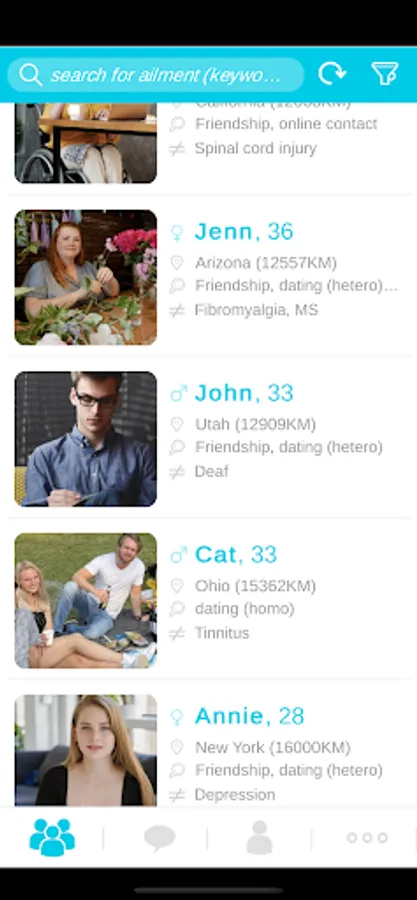 This peer support app is meant only for people with physical or psychological ailments, like;