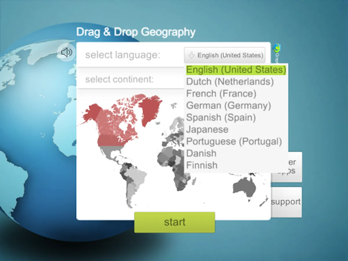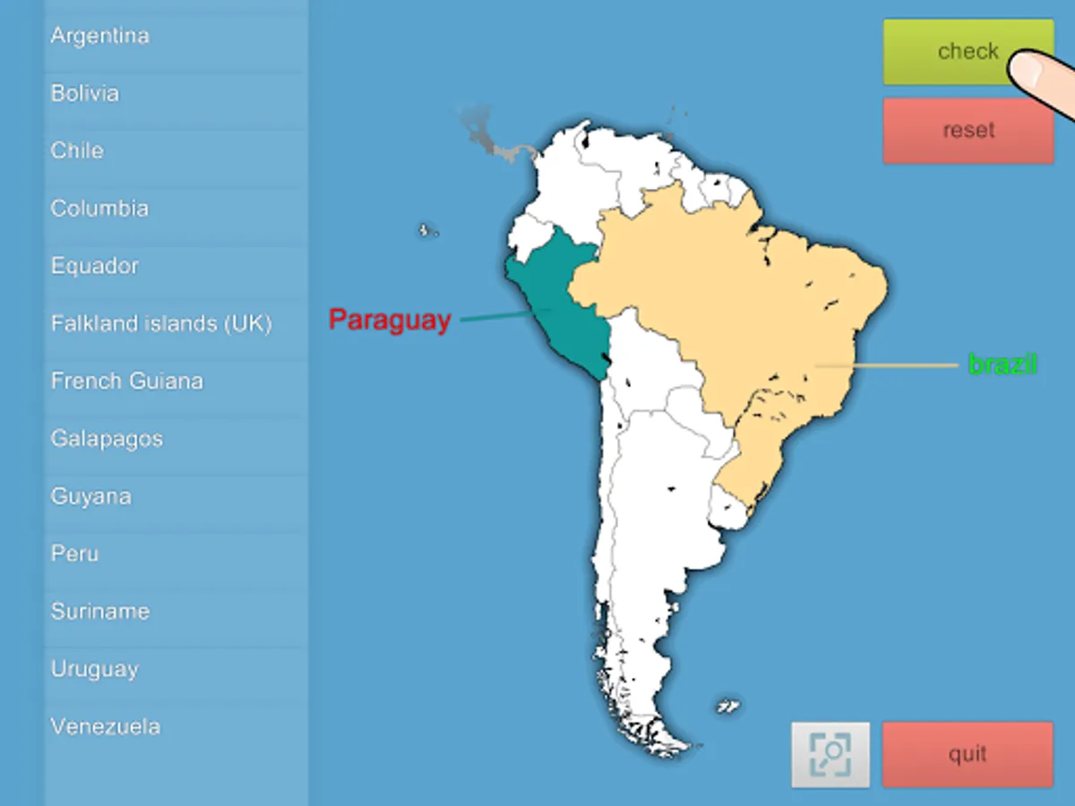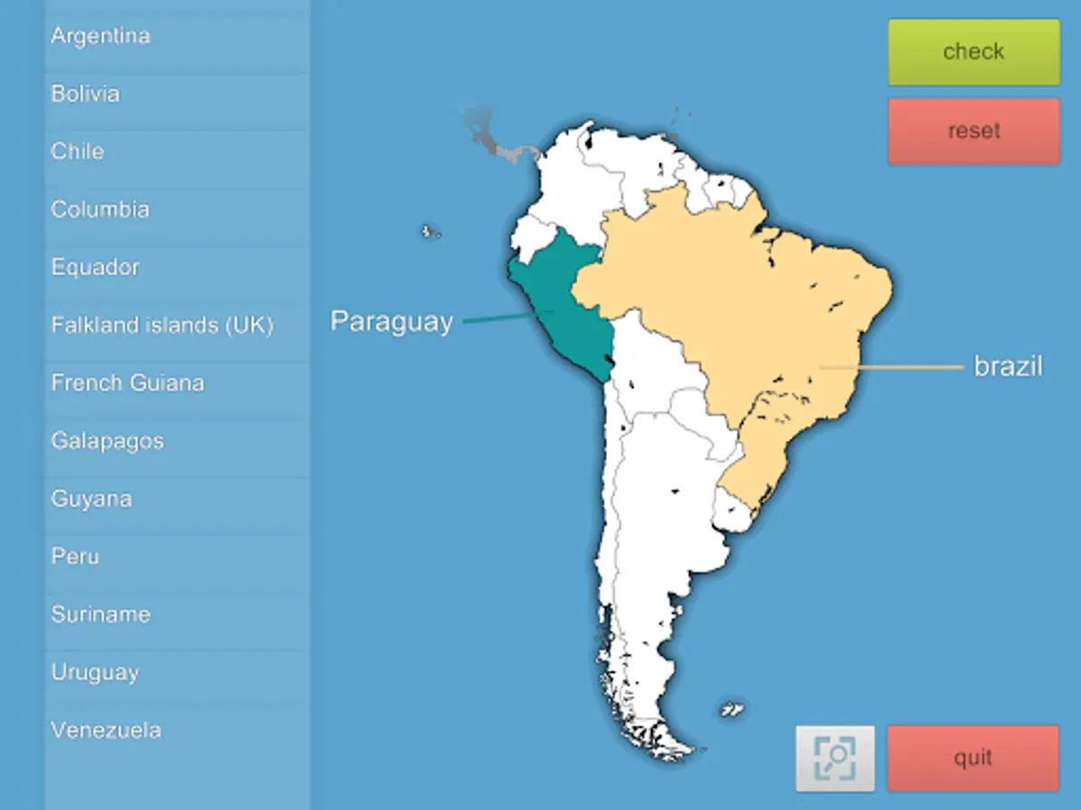 This app contains all countries of the world and, for ease of use, learning them is divided by continent.