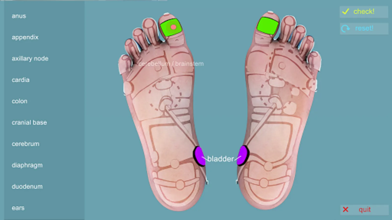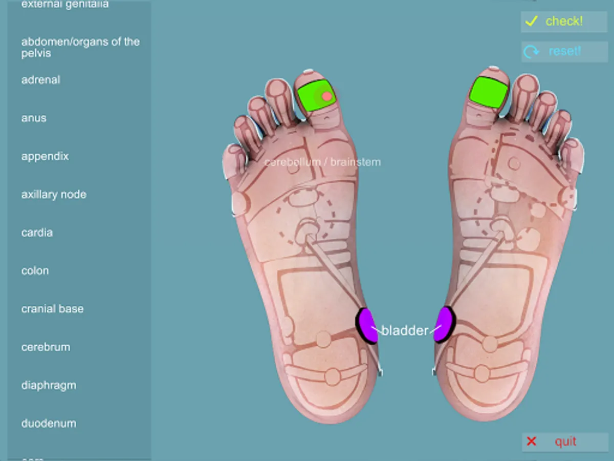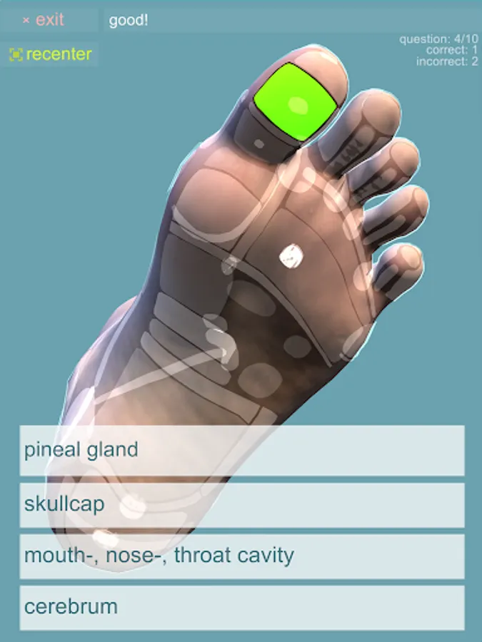 Learn the locations, functions and theory behind reflexology through the use of 3D, 2D & Text quizzes.