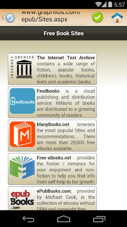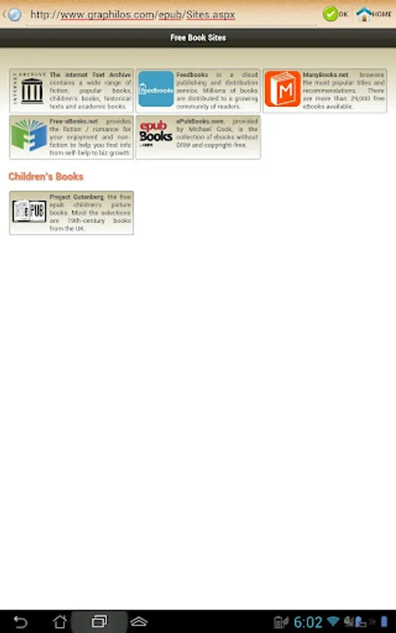 - It's also a downloader: The software is not bound to any book store or online library. It has a built-in web browser. You can visit any web site with this browser by entering a url. When you click a hyper link to an .epub file, the software downloads and imports this .epub file for your convenience. If you don't know where to download ePub books, the software provides you a list of web sites.