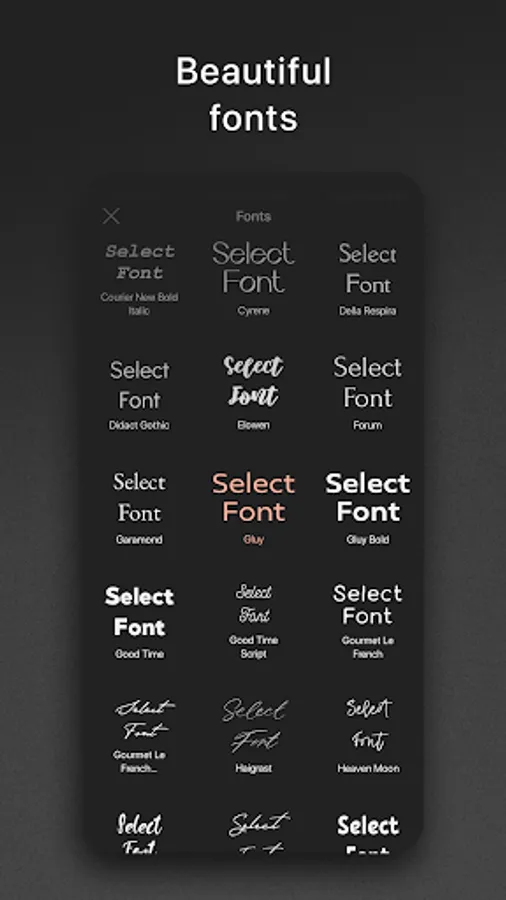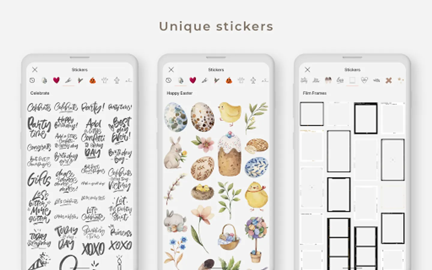 ✔ Add free ready letterings from regularly replenished sticker packs or write your own text with one of many fonts available in the application, as some fonts support Cyrillic.