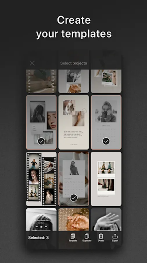 Find your unique style, save collages and plan social feeds. Now creating beautiful Instagram stories has become even faster! Templates can be deleted, swapped and duplicated! Create one template and reuse it many times.