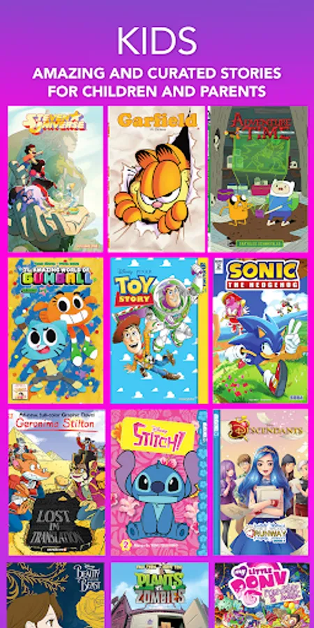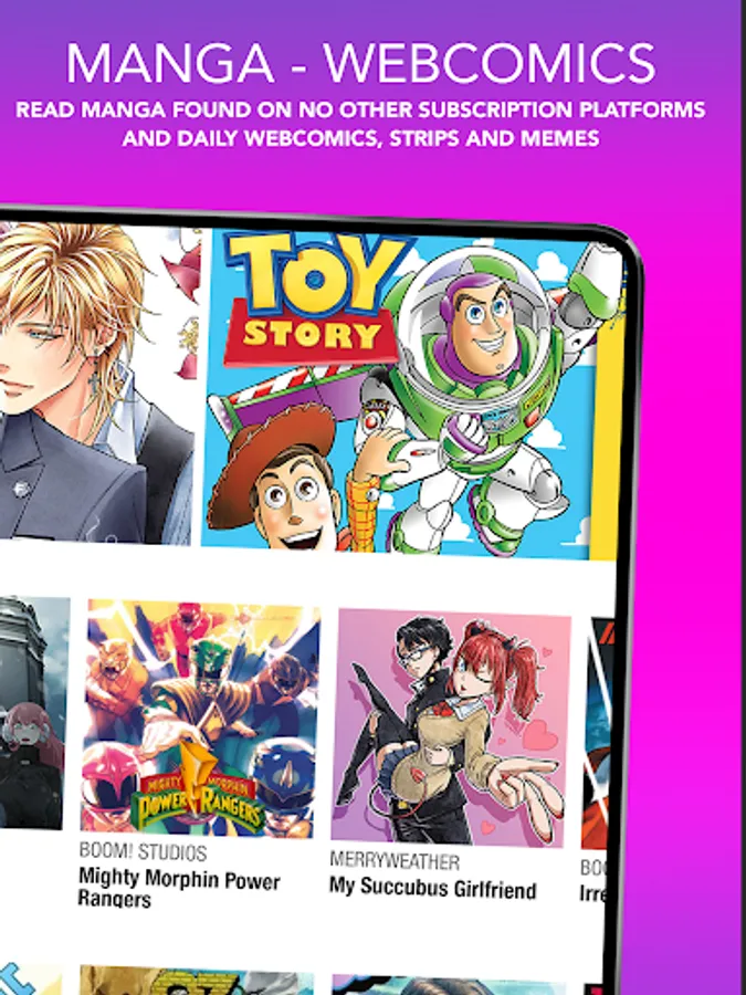 Read creator-owned comics and webtoons as well as your favorite hits from the top comic and manga publishers including Dark Horse Comics, Valiant, Boom! Studios, IDW, Dynamite, Top Cow, Legendary, TOKYOPOP, Papercutz, Aspen, and dozens more!