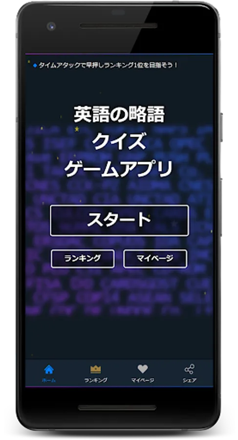 The English Abbreviations Quiz Game App is a game-like free app site where you can quiz the answers from the official names of English abbreviations and their Japanese meanings.